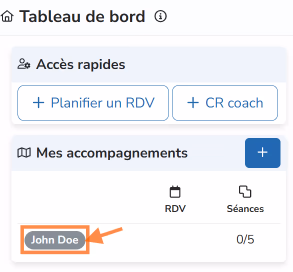 Depuis mon tableau de bord, je clique sur le nom de l'accompagnement que je viens d'ajouter.